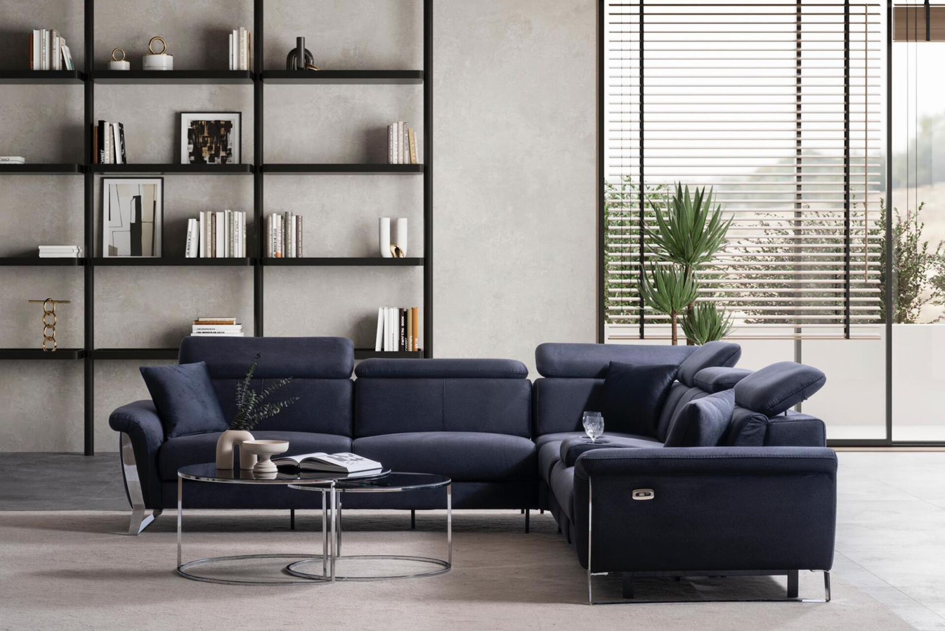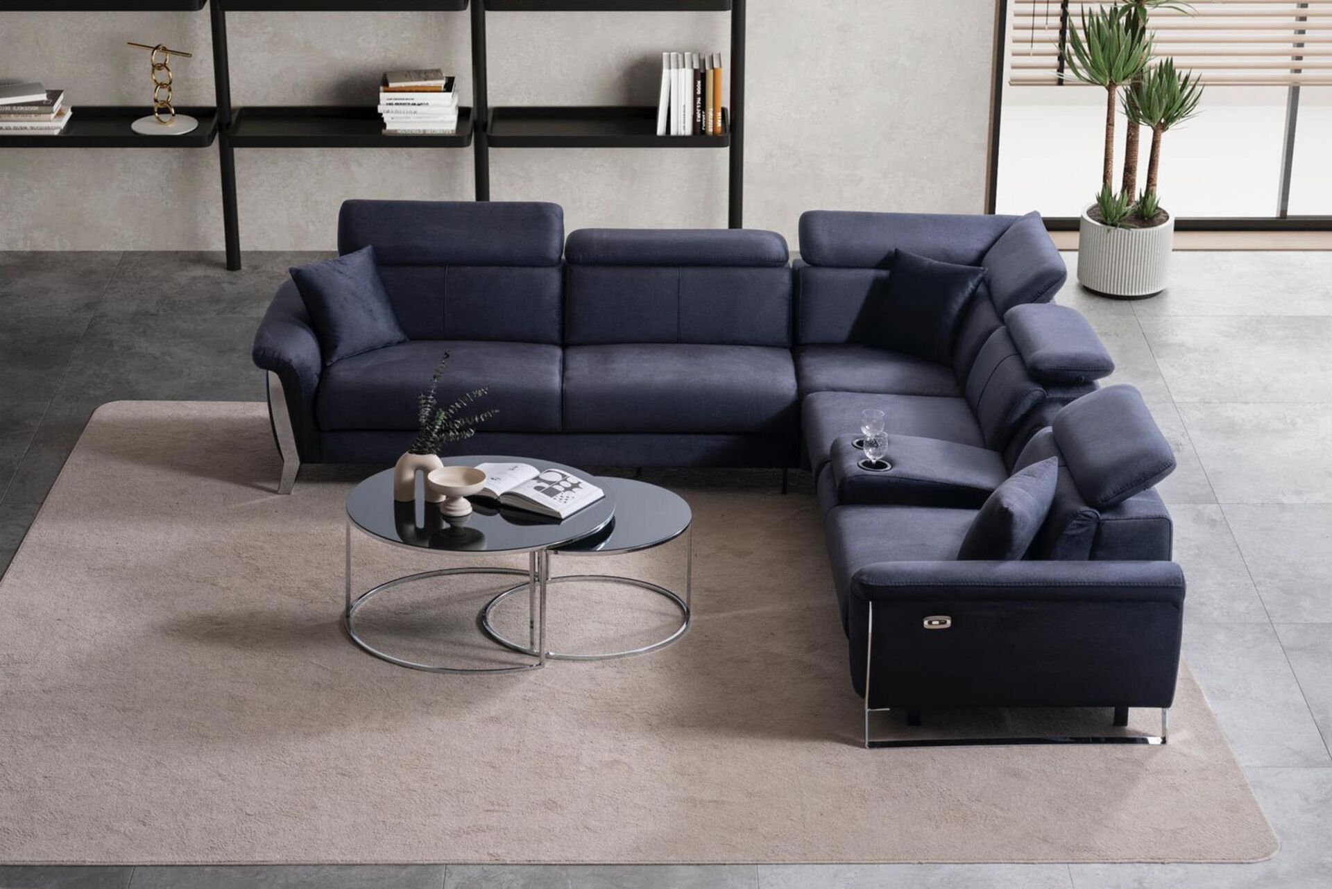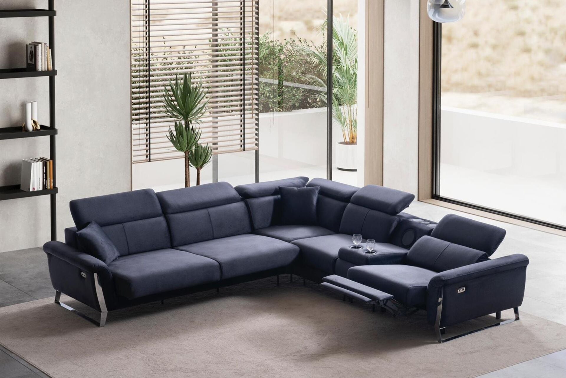 Köşe Koltuk: 3lü Kollu Modül + Köşe Modül + 70lik Modül + Ses Sistemli Modül + Reclinerlı Modül