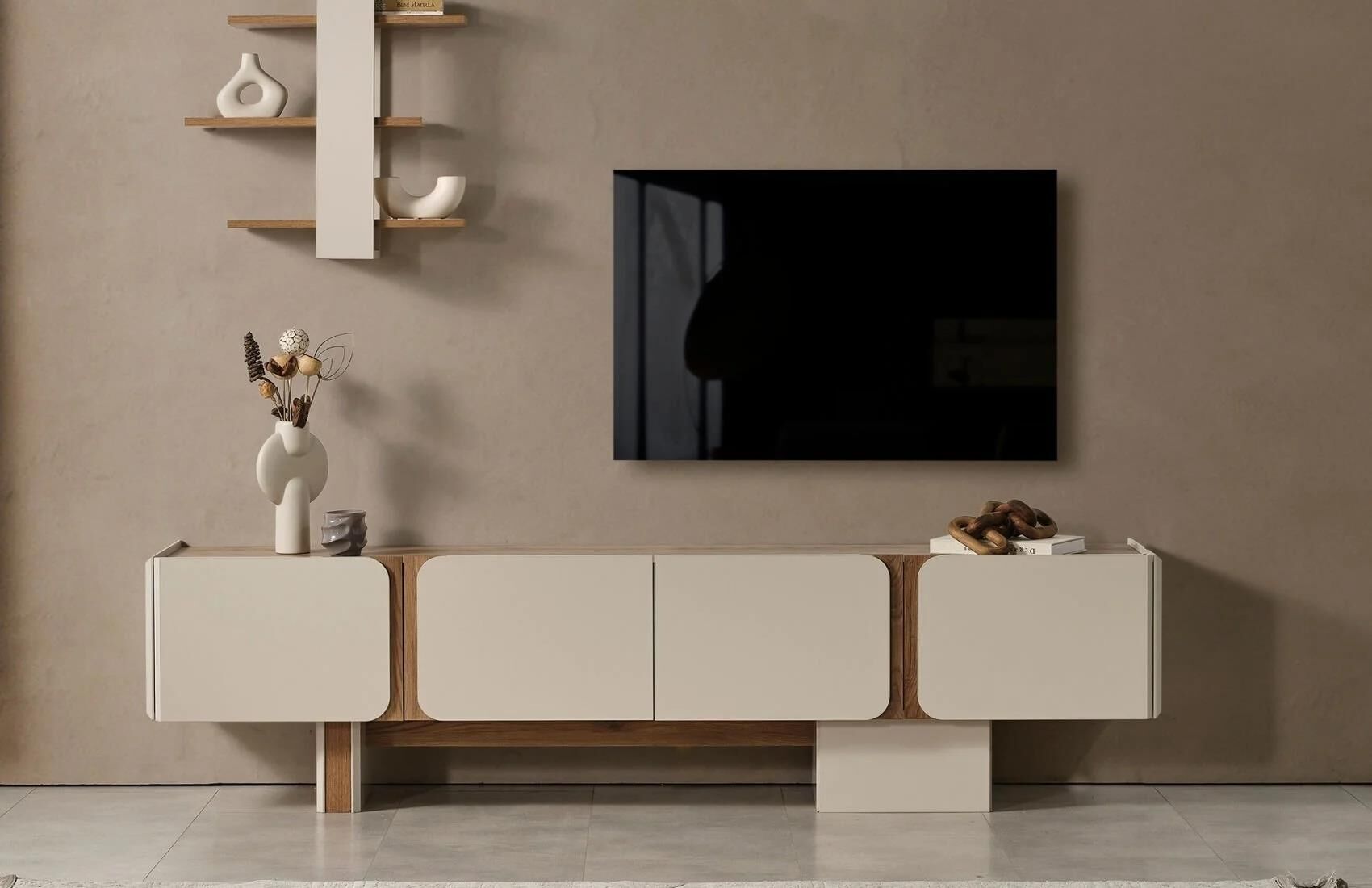 Ünite üst kısım duvara direkt monte edilebilir. Tv üst blok üzerine asılabilir.Mdf malzeme ve seramik kullanılmıştır