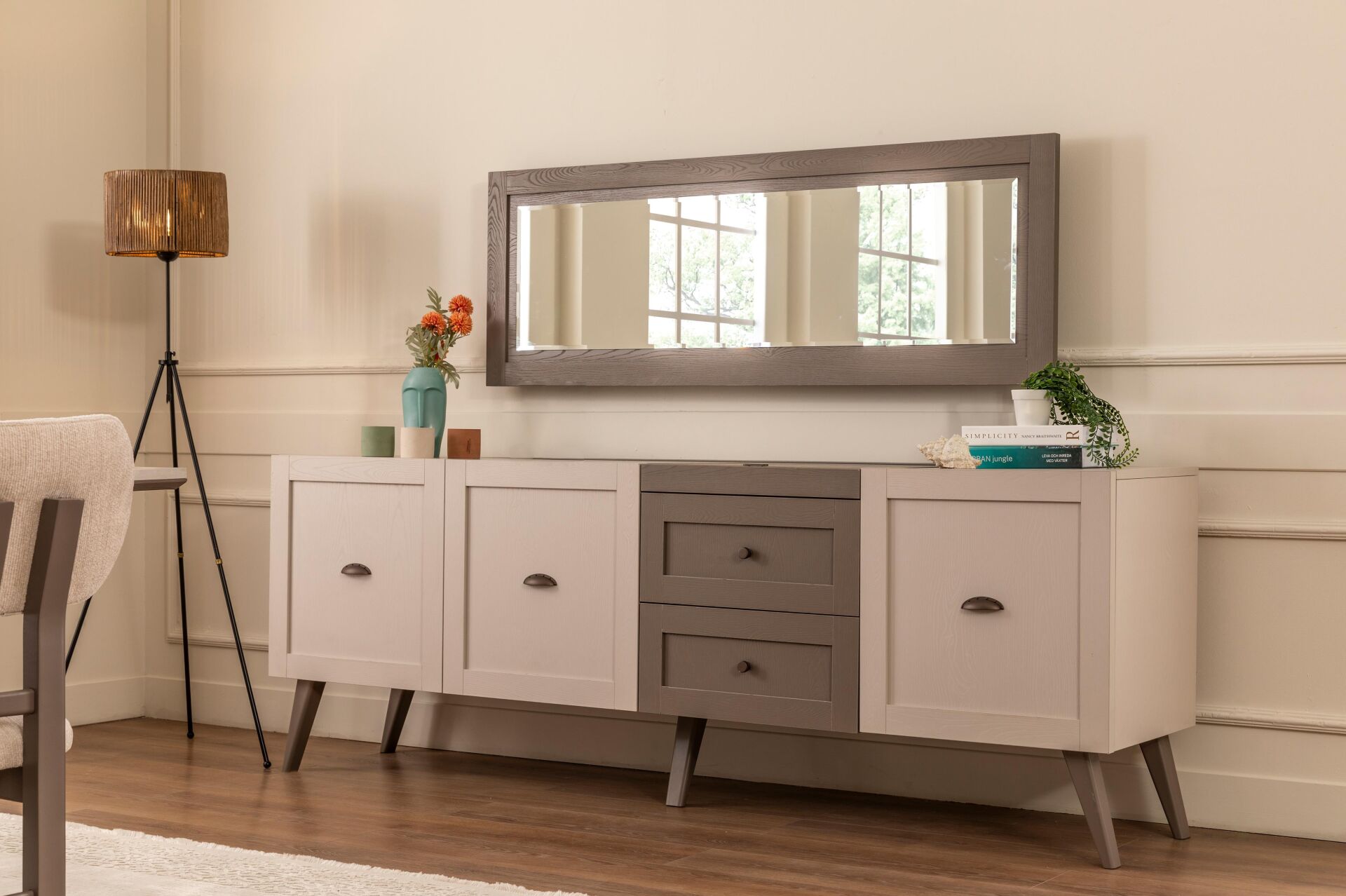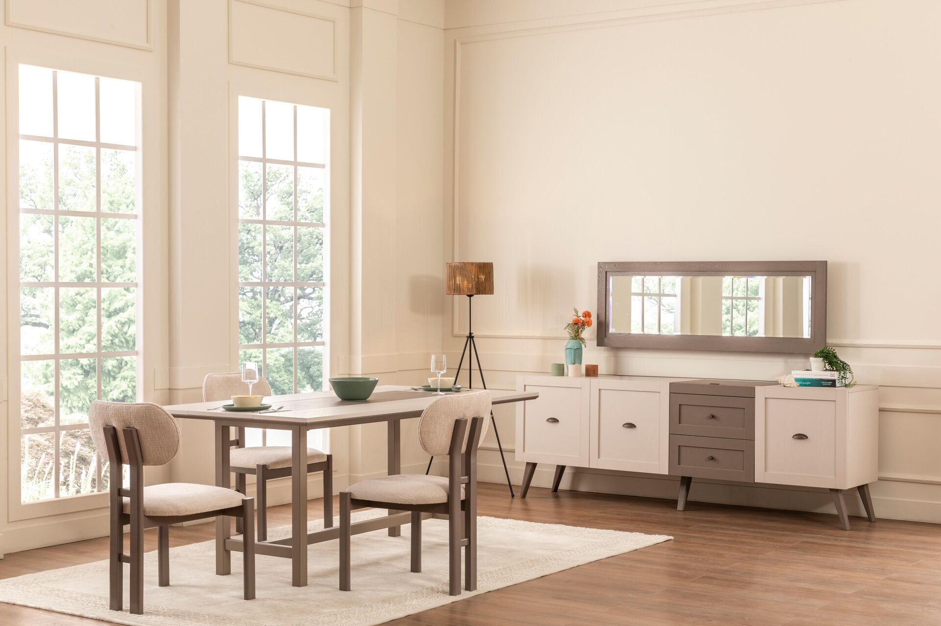 Ahşabın doğal armonisiyle zenginleşen bu tasarım, yaşam alanlarınıza ferahlık ve sade bir şıklık getirirken,