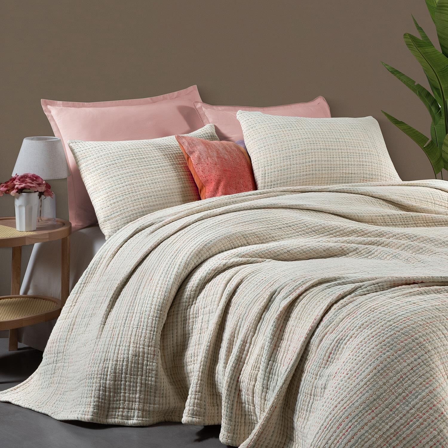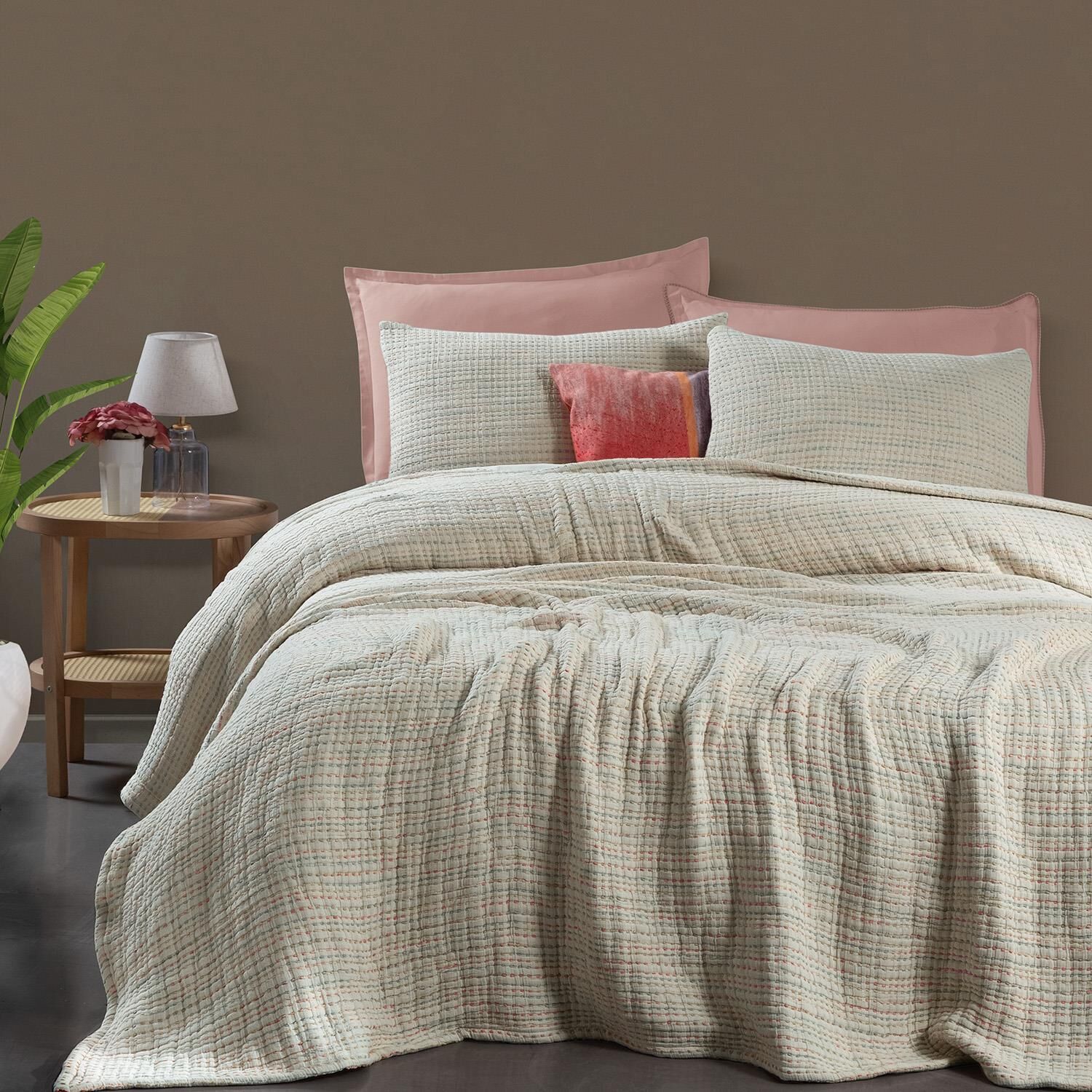 Yıkamalı, müslin yatak örtüsü.