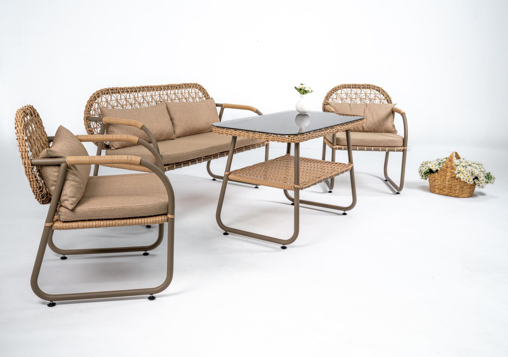 Alüminyum iskeletten oluşan takımımız tamamen el örgüsüdür.