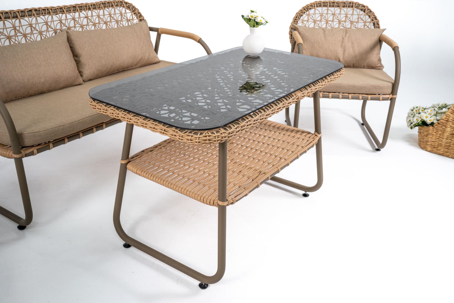 Özel tasarım koltukları ile bahçenize estetik hava katacak oturma grubumuz ile