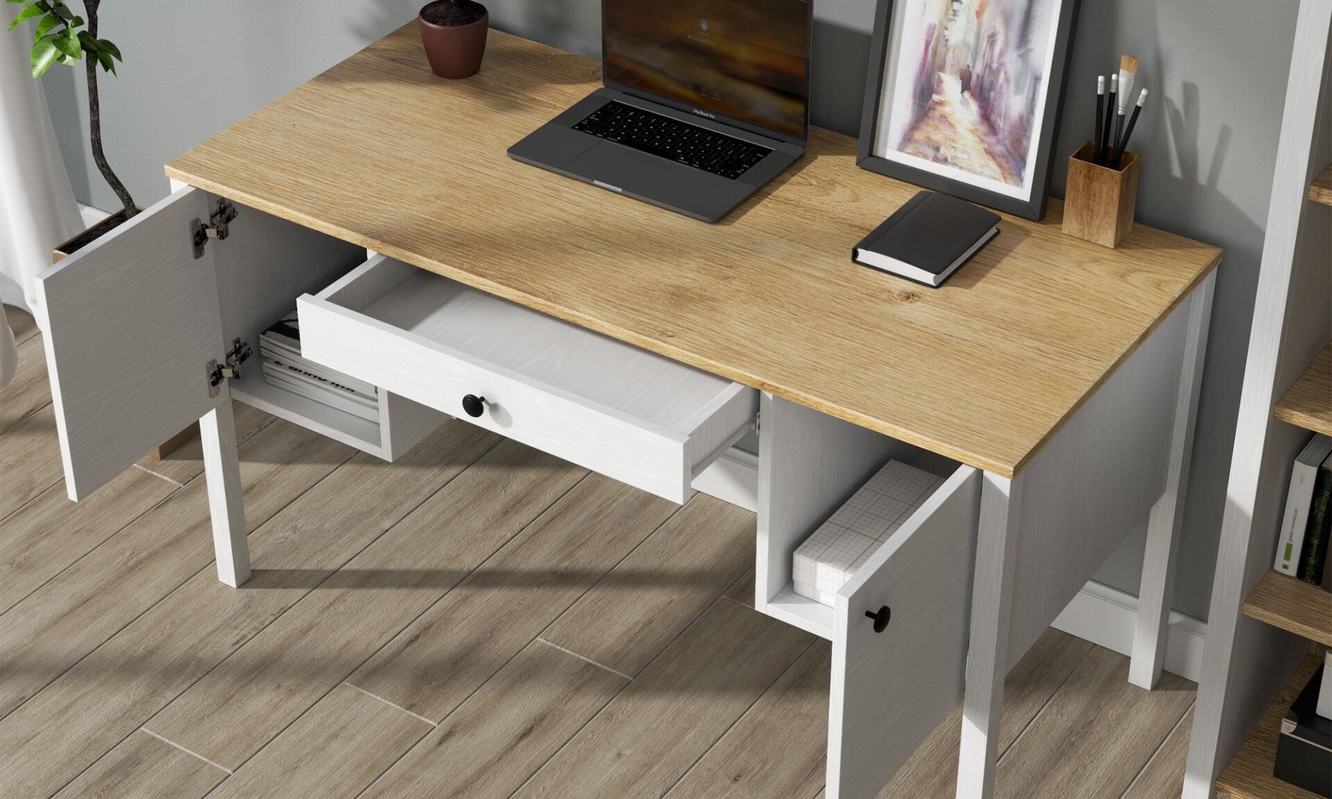 Renk: Açık meşe ve krem kombinasyonu