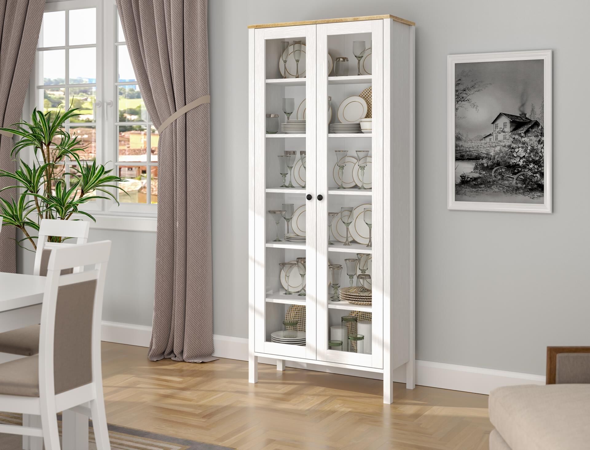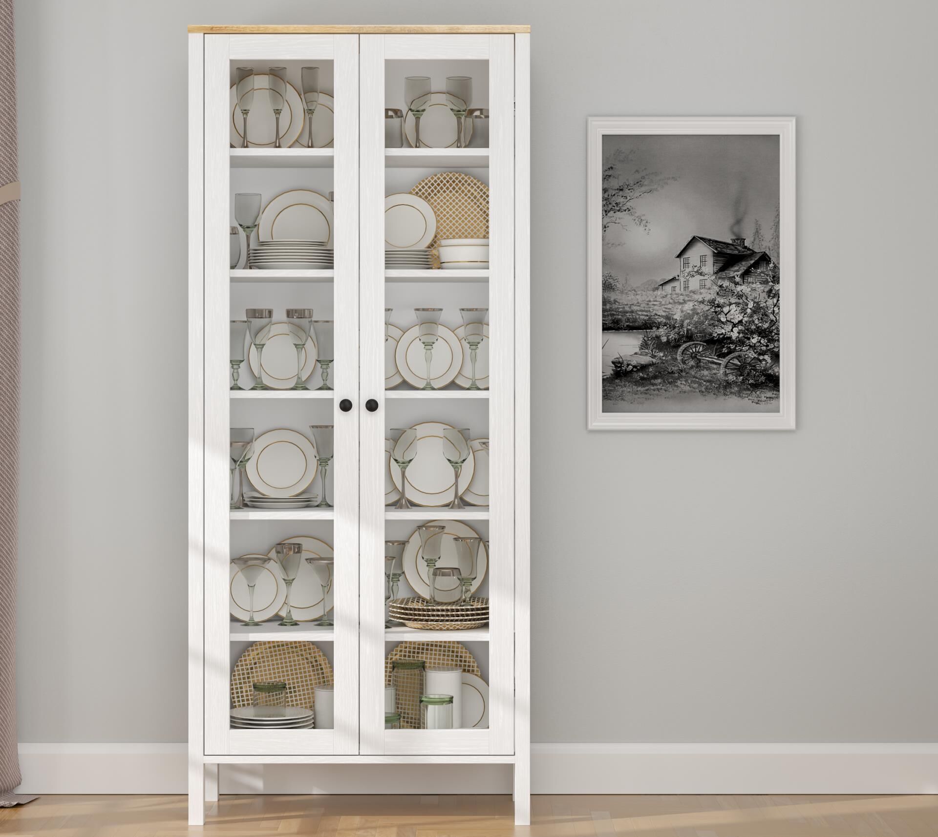 Renk: Mat beyaz gövde, doğal ahşap üst tabla