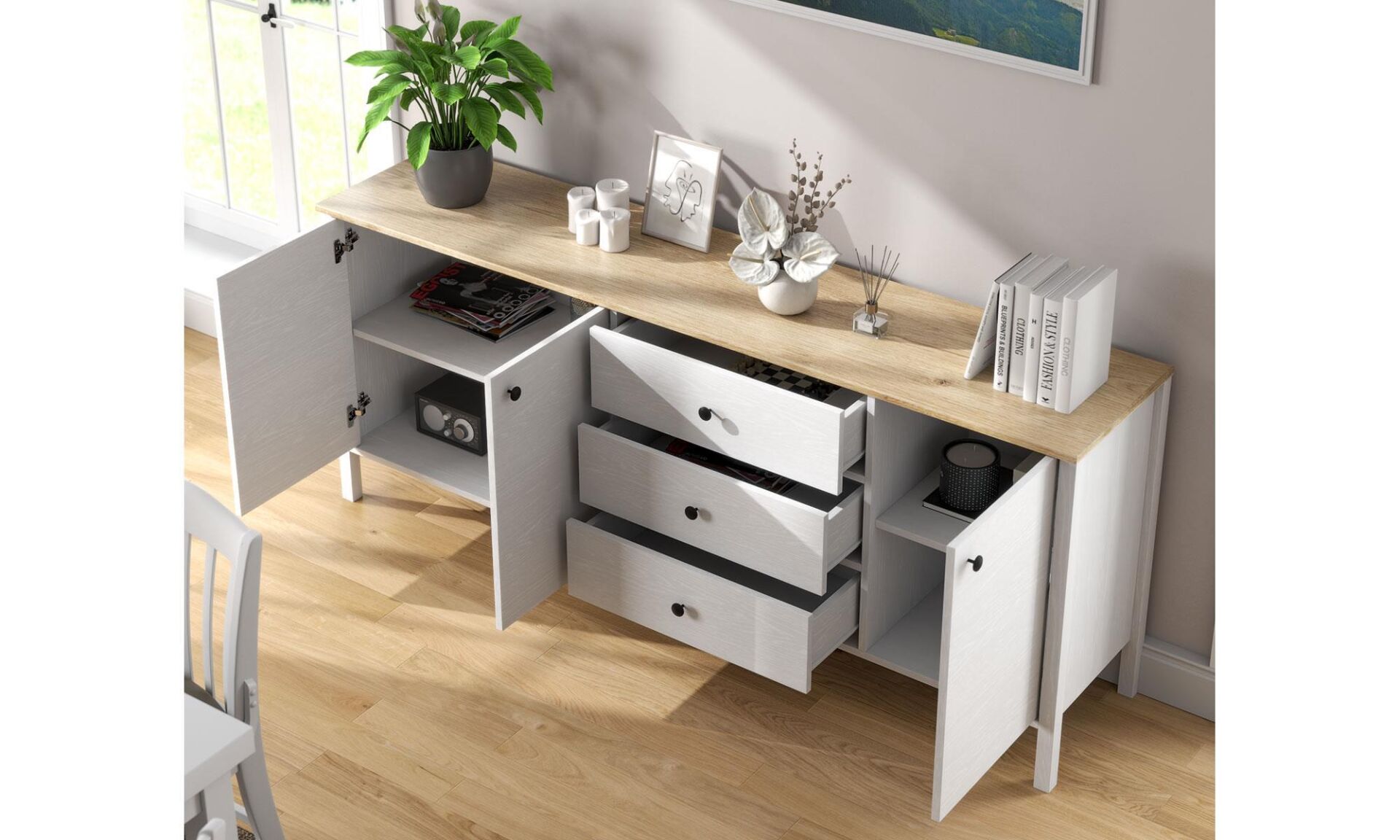 Konsol Özellik: 3 kapaklı ve çekmeceli