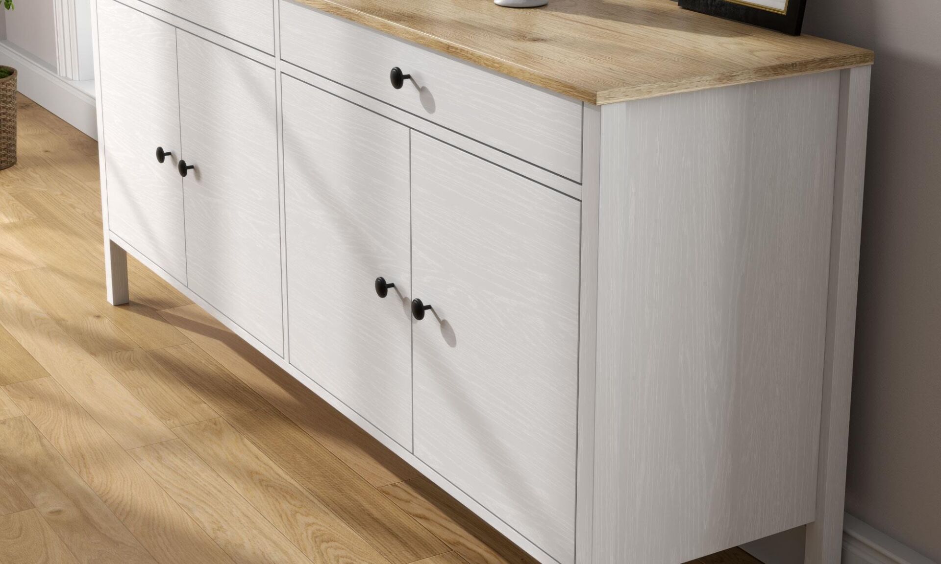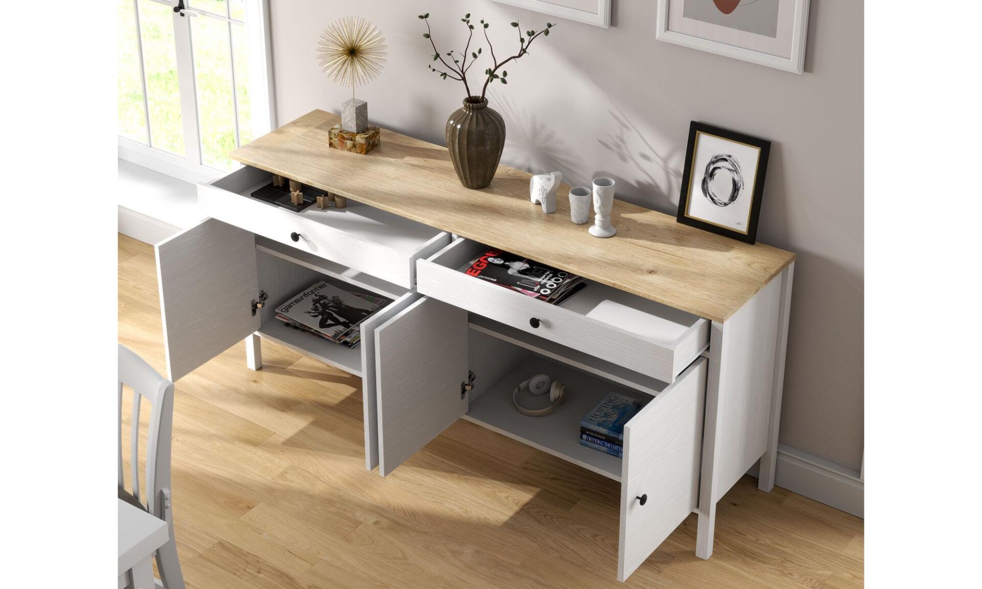 Konsol Özellik: 4 adet düz panel kapak, 2 adet geniş çekmece