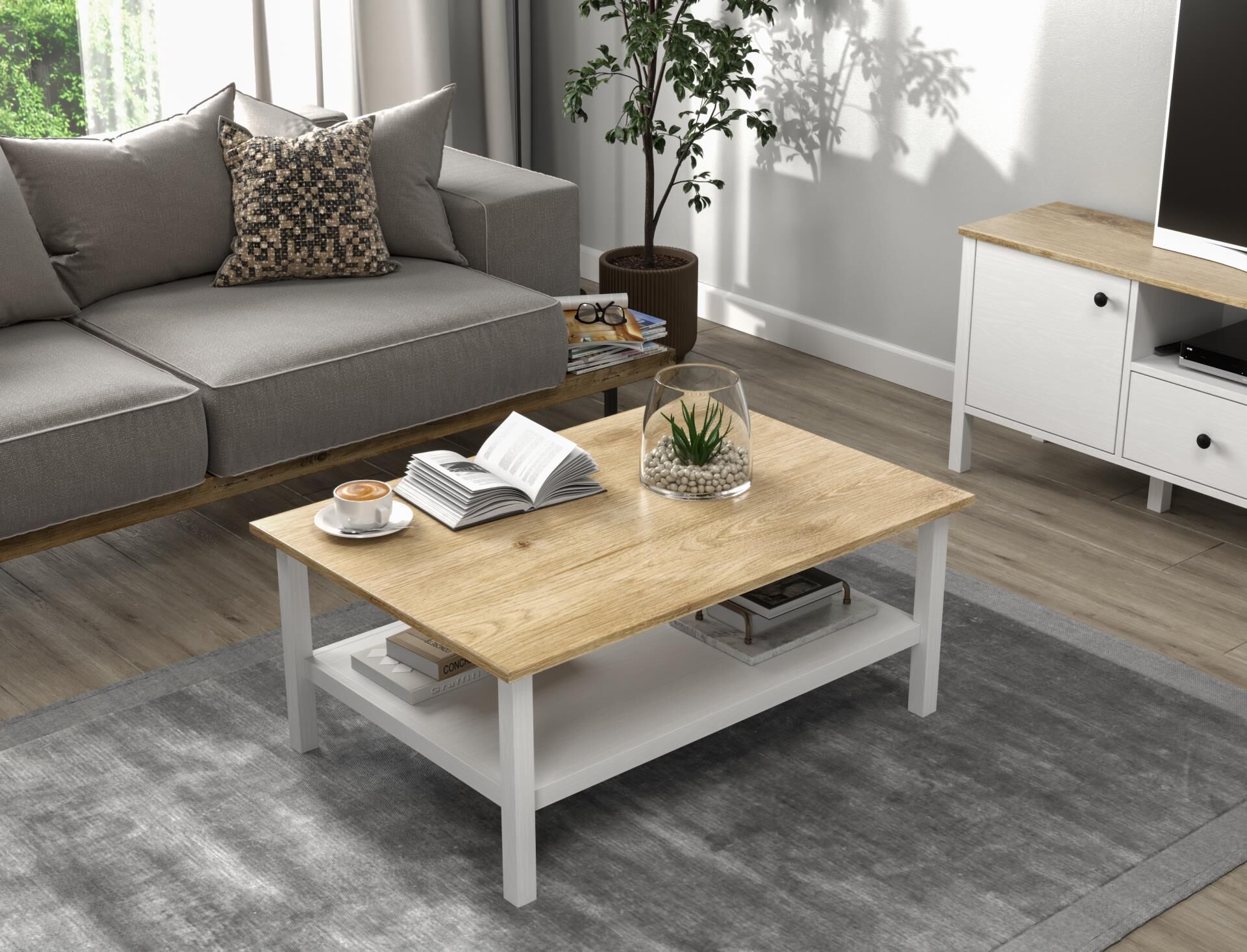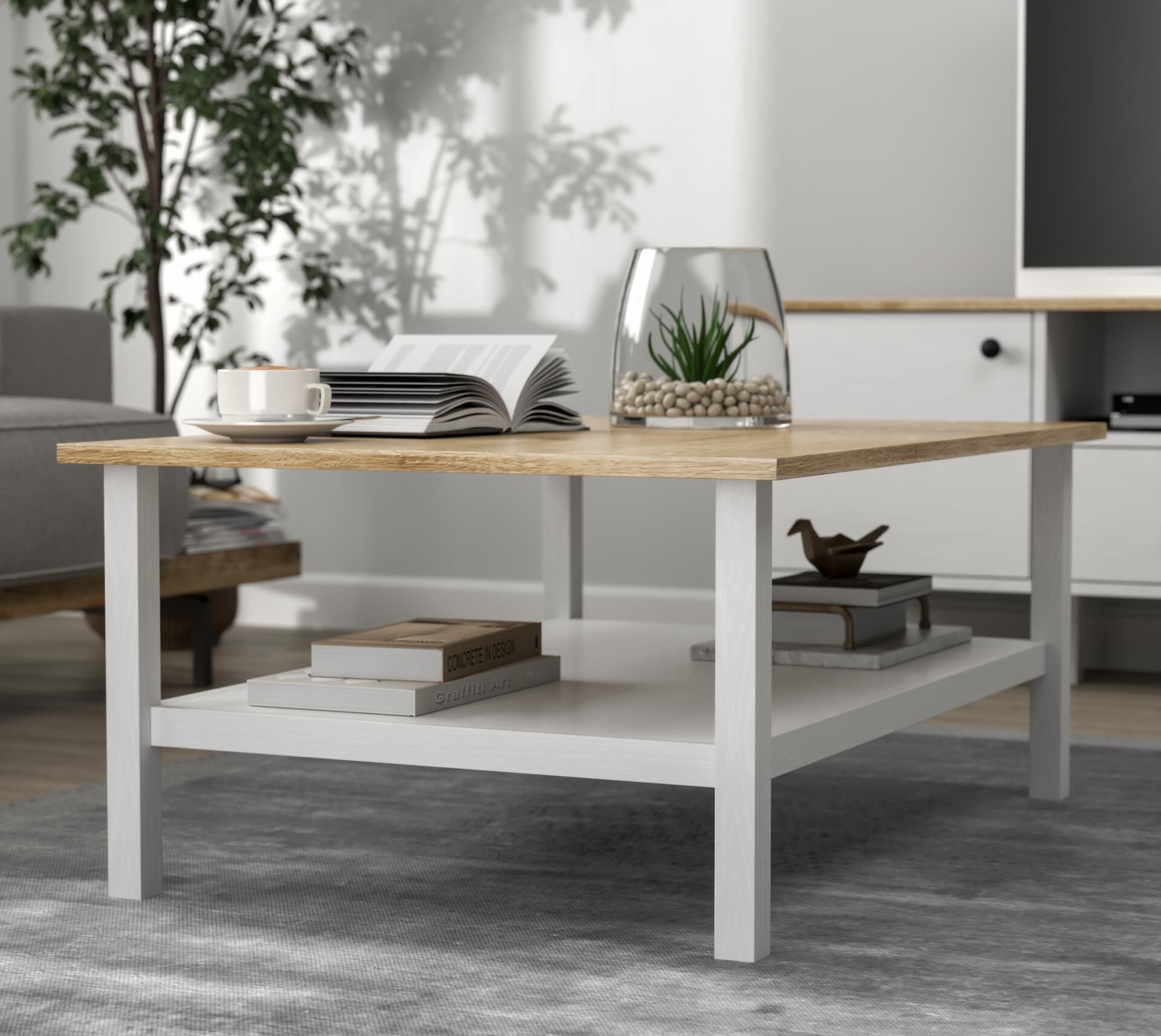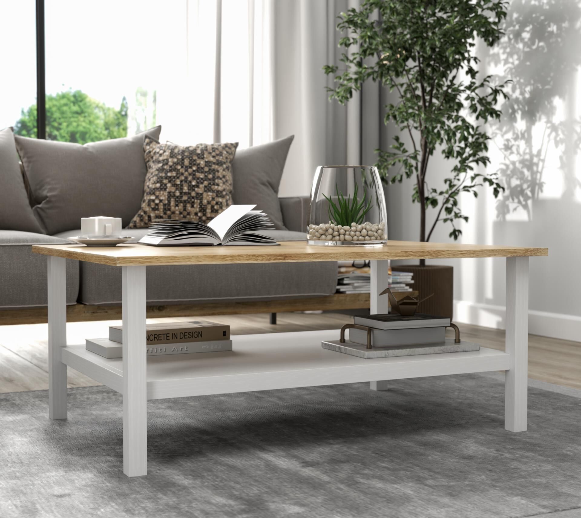 Renk: Doğal ahşap üst tabla, beyaz gövde