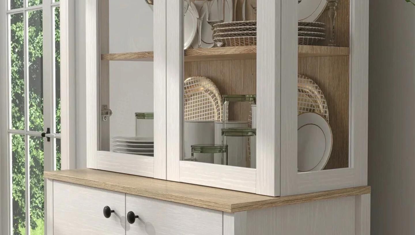 Raf: 4 katlı camlı raf sistemi + alt dolap içi raf