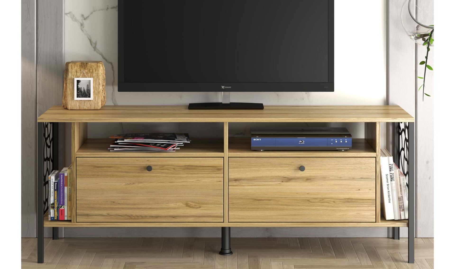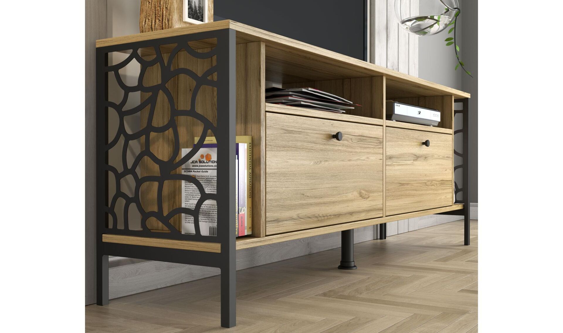 Renk: Doğal meşe desen gövde, siyah metal ayak ve yan panel