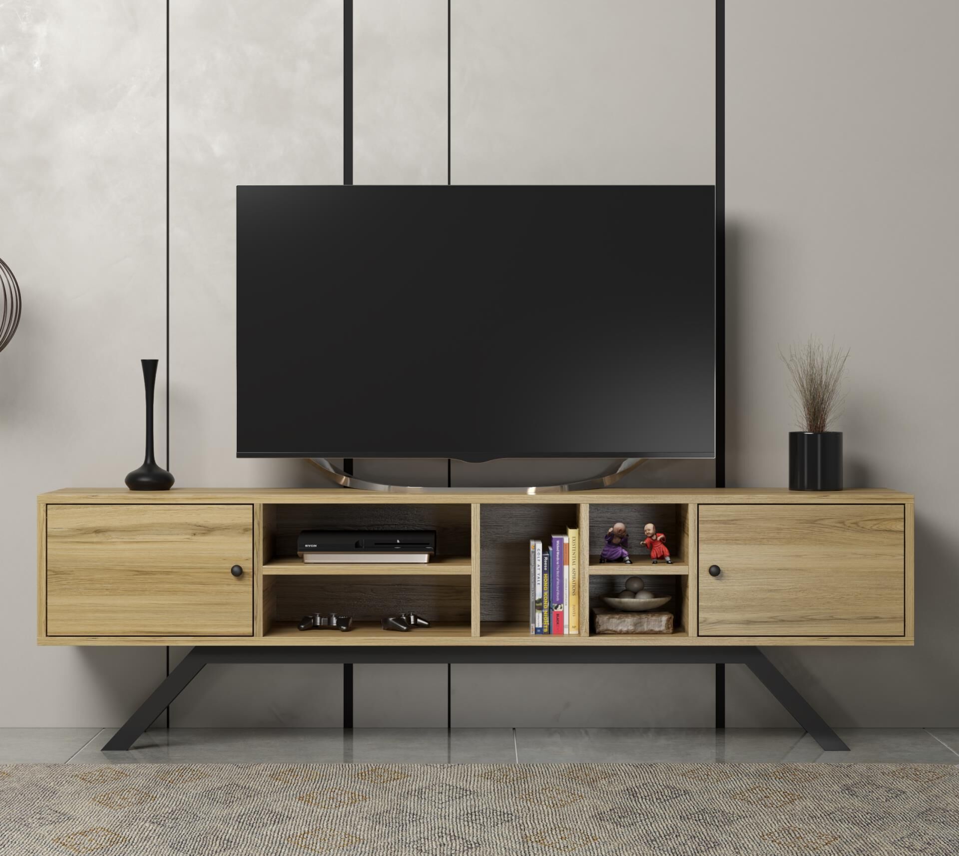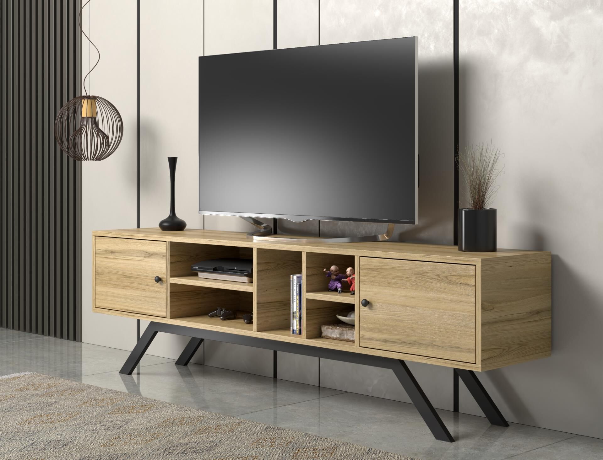 Renk: Doğal meşe desen gövde, siyah mat metal ayak