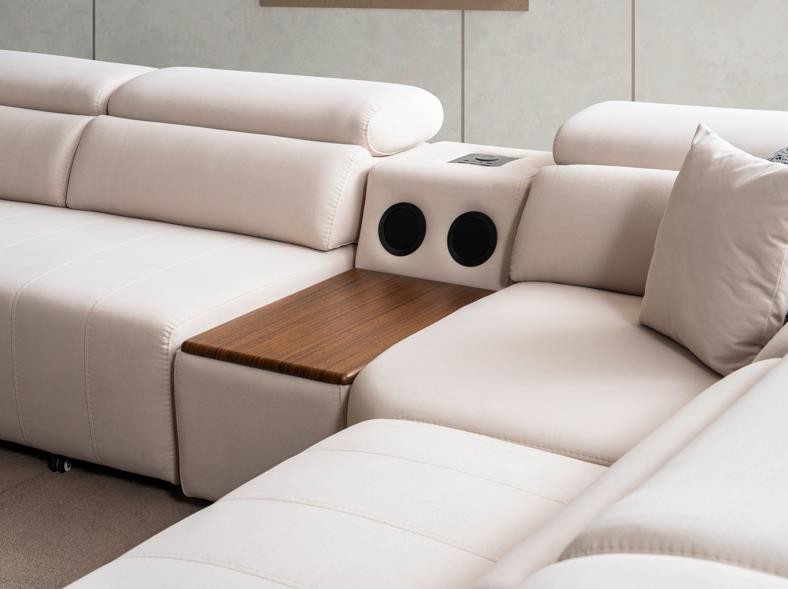 Yatak olabilen modülünde uyku konforu, açısı ayarlanabilen boyun destekleriyle köşe kanepenin