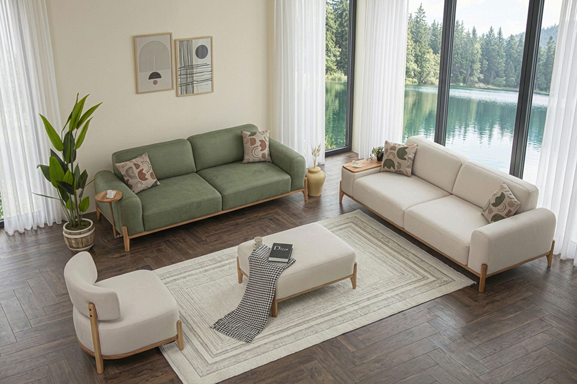 Takım İçeriği: 2 adet kanepe + 1 adet berjerdir. Sehpalar ve puflar dahil değildir