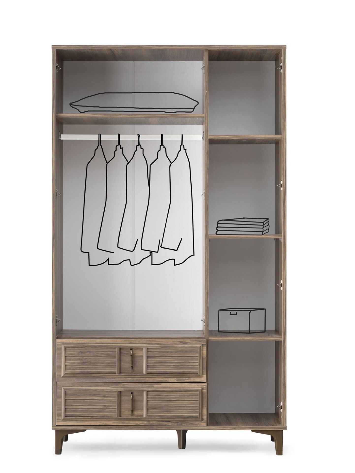 Moi 3 Kapılı Dolap, geniş iç hacmi ve modern tasarımıyla evinizdeki depolama ihtiyaçlarını karşılıyor.